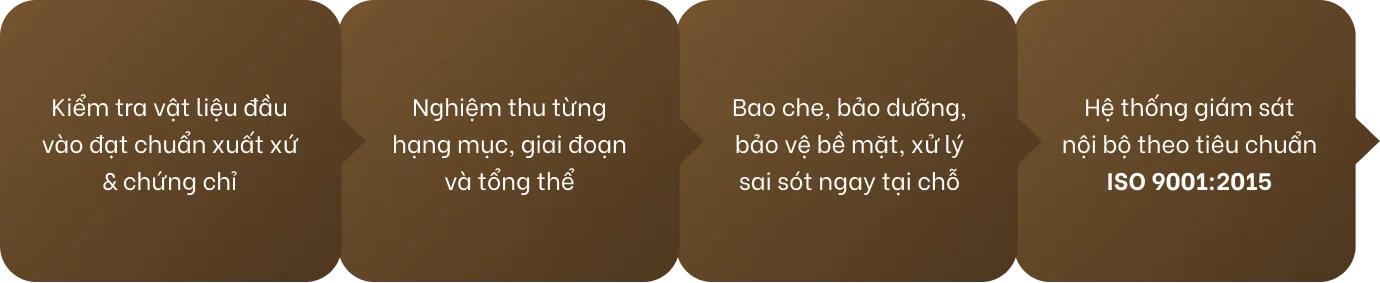 Sử dụng vật liệu từ thương hiệu uy tín: thép Hòa Phát, xi măng Vicem, điện Trần Phú, ống Vesbo, gạch A1, sơn Dulux, chống thấm Newtec… Đảm bảo độ bền – tính thẩm mỹ – an toàn lâu dài.